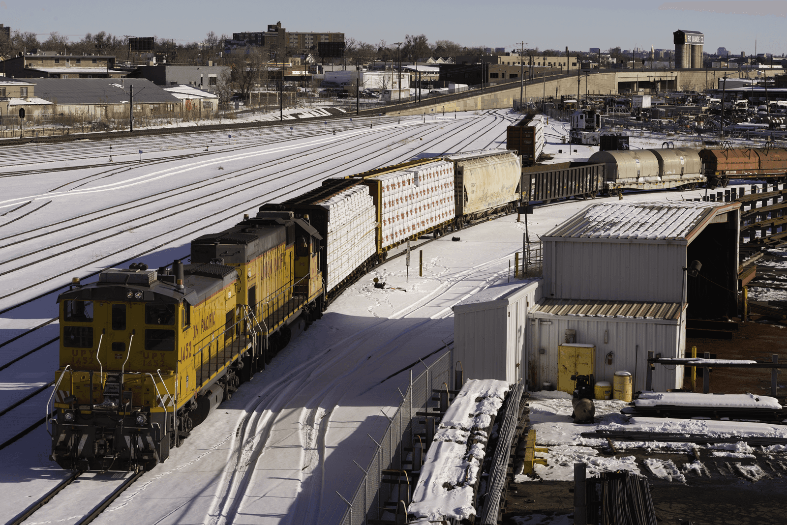 The Denver & Rio Grande Railroad (D&RG) acquired the land from territorial governor Alexander Cameron Hunt five years before Colorado statehood. Burnham Yard was named after George Burnham of Baldwin Locomotive Works.