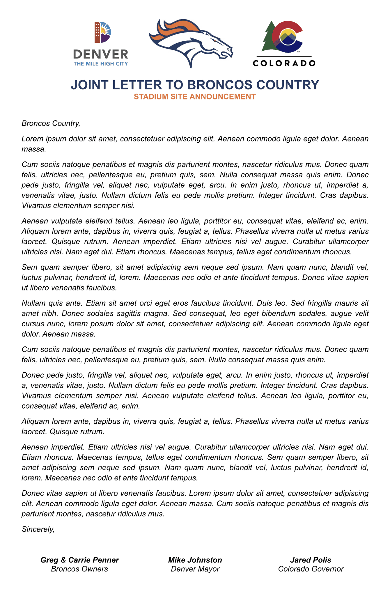 For any sponsorship inquires or interest, please send an email to Partnerships@Broncos.NFL.net.